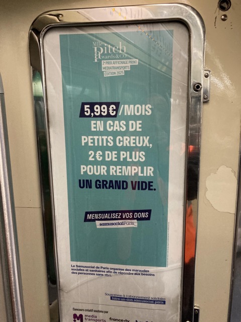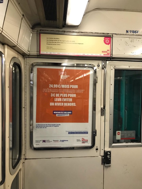 SAMUSOCIAL DE PARIS – Diffusion de la campagne Abonnement Solidaire en intérieur rame