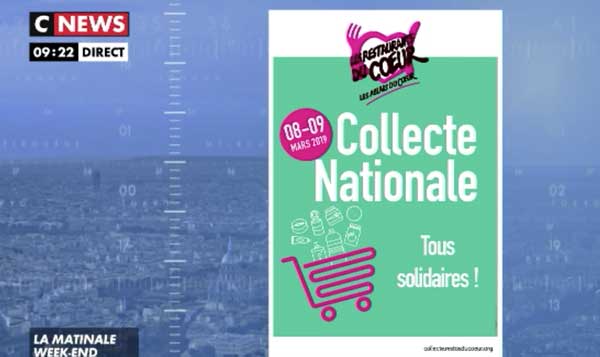 Les 08 et 09 mars prochains aura lieu partout en France la collecte nationale 2019 des Restos du Cœur.