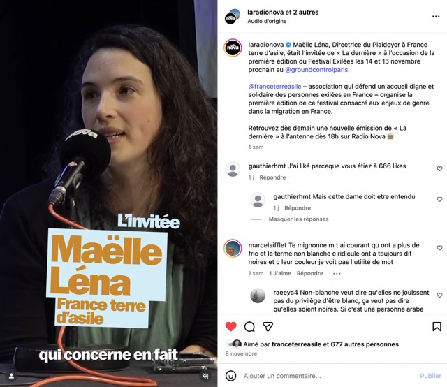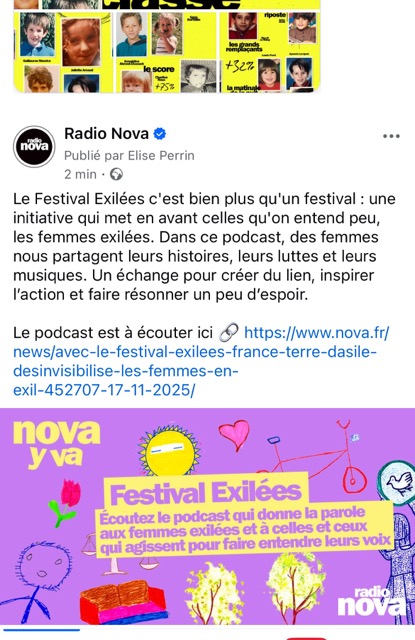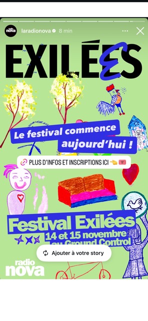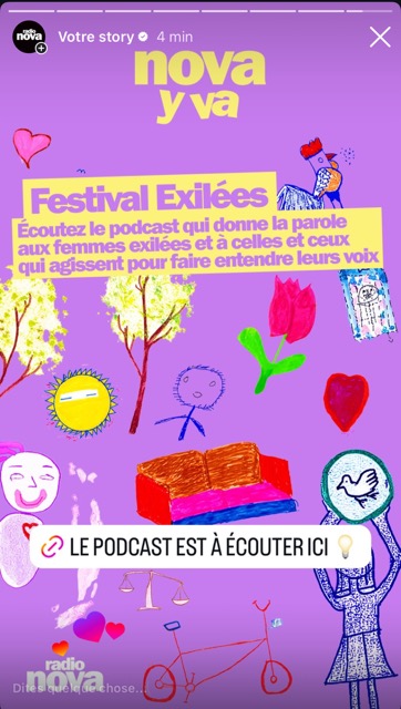 • RADIO NOVA : l’a­gence a négo­cié la créa­tion d’un par­te­na­riat mul­ti-canal qui a asso­cié une cam­pagne radio, la créa­tion d’un pod­cast Nova y va, une invi­ta­tion de la Res­pon­sable Plai­doyer de France terre d’a­sile dans l’é­mis­sion La Der­nière de Guillaume Meu­rice, plu­sieurs relais RS des temps forts du fes­ti­val et la rédac­tion d’ar­ticle web.