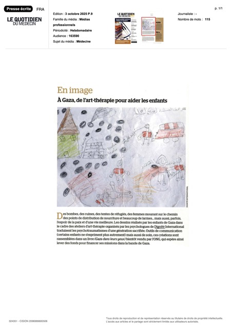 Mlle pitch a recommandée à DIGNITÉ International de rédiger une tribune libre à diffuser le 7 octobre, date des 2 ans du début de la tragédie à Gaza.
