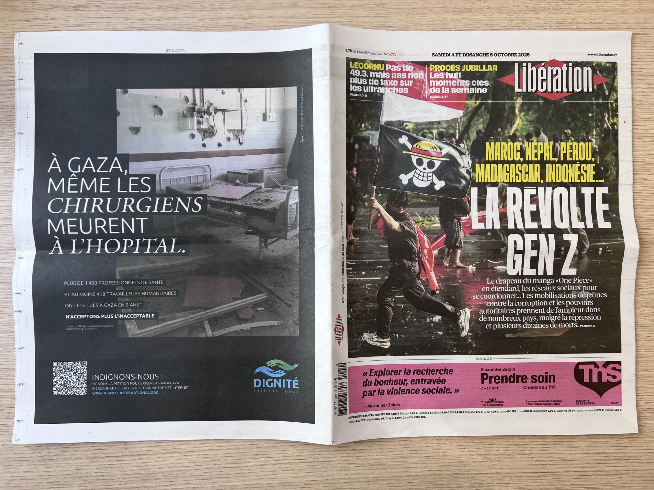 La campagne est déployée dans la presse : Libération, Le Parisien Week end, Nouvel Obs, Courrier international, La Vie, Society et sera proposée en renfort en gracieux à d’autres médias en floatting pour une diffusion selon leurs dispos entre octobre 2025 et février 2026.