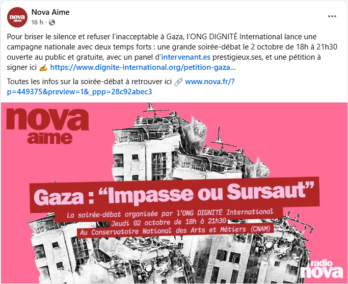 Pétition disponible ici : https://www.dignite-international.org/petition-gaza