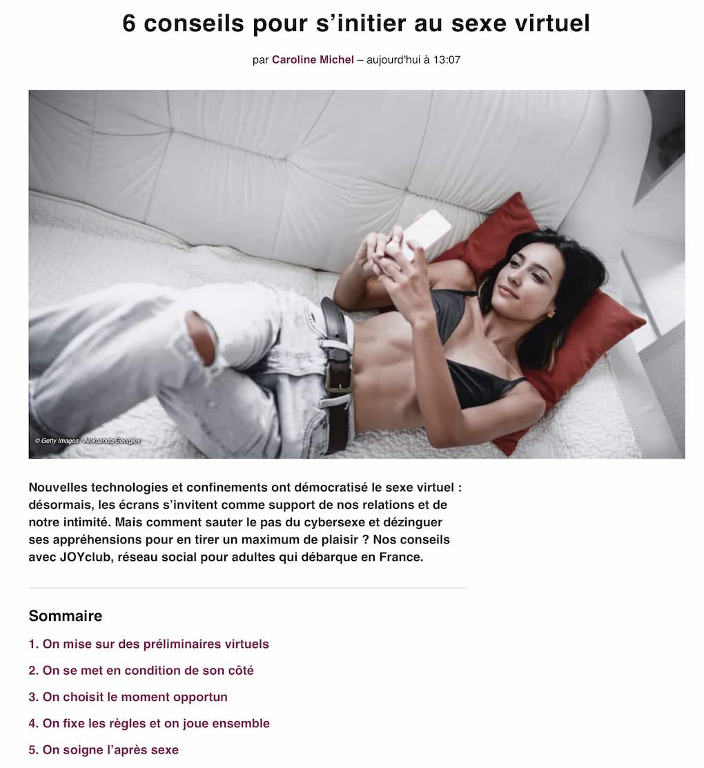 Joyclub est un site libertin où tous les rites sexuels même fétichismes sont abordés sans tabou. La plateforme permet de s’initier à certaines pratiques sexuelles sans danger puisque derrière un écran, et à accompagner les femmes dans leur émancipation sexuelle et leur apprend à prendre le pouvoir de leur plaisir.