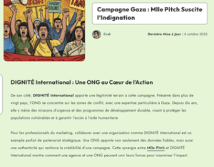 À l’approche des deux ans du conflit à Gaza, Dignité International s’allie à l’agence créative Mlle Pitch pour lancer une campagne coup de poing baptisée « Indignons-nous pour Gaza ».